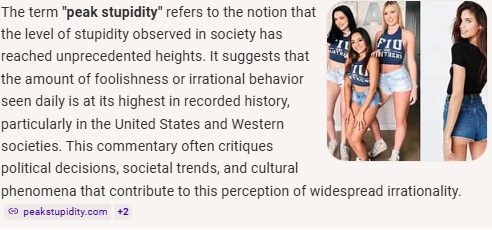 Peak Stupidity, for one, is glad that Bing's "Copilot" AI search software has been promoting this site with blurbs and images. Many times, I can tell that the blurbs were spit out directly from a software perusal of our "About" page, as it were.*