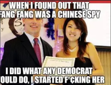 So let me get this straight. If you become an intelligence asset for the Chinese government, you retain your office and your seat on the freaking intelligence committee. If you bang a hooker who is NOT a spy, your life is over. Do I have that right?That was great! Here's the official meme, for the record: