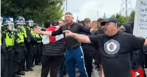 These guys are explaining to these police officers a number of things, much which is lost in translation to me. From what I did catch during this hour and a half (and other videos), the rioters, being for the most part, almost solely, the same people as these cops, want to reason with them as fellow Brits. Why are you cops out here in our faces today? Don't you understand that you are working completely against your own people here? What about our children? What about YOUR children, Mr. Starmer's enforcers ?