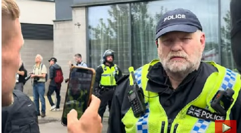 He was one of the many police officers that can be seen interacting (like that one!) with rightfully angry Brits outside the Holiday Inn Express housing alien people that day.