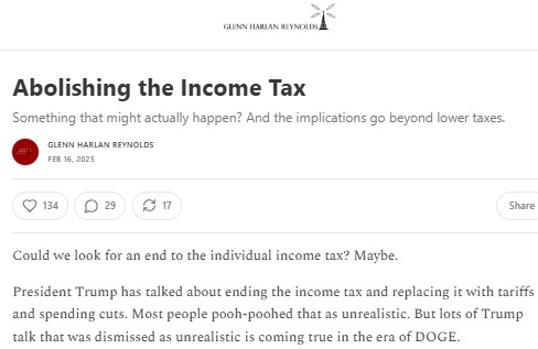 In this post, the DIMS? question applies to the even-keeled, still-too NeoCon, but Libertarian and common-sense-oriented Instapundit. He's, in actuality, University of Tennessee Law Professor Glenn Reynolds. Besides his famous blog - one of the first I can recall - Professor Reynolds writes weekly(?) columns for The New York Post***, possibly still USA Today, and he also has a substack column. It's all pretty fair and reasonable, but this Law Professor made a simple mistake in his latest, Abolishing the Income Tax.