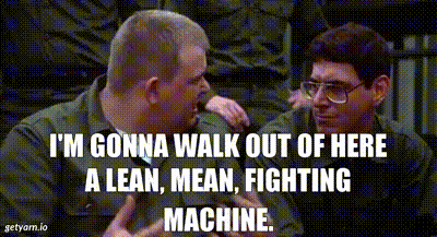 That's one of the many funny lines* in the 1981 movie Stripes. Man, some of those Saturday Night Live comedians and others were pretty young 44 years ago. John Candy, maybe the 2nd, after John Belushi, in a sequence of hilarious fat guys from that show (Chris Farley being the next(?)), died young as fat guys unfortunately tend to. The others are old guys now.