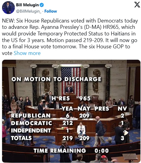 “Extending TPS for Haiti is not only the moral and humanitarian thing to do—it’s also good policy. It’s good for families, it’s good for our economy, and it’s good for America,” Pressley said ahead of the vote. “Today the People’s House has an opportunity to pass our legislation to extend Haiti TPS and save lives. And we must do just that.”