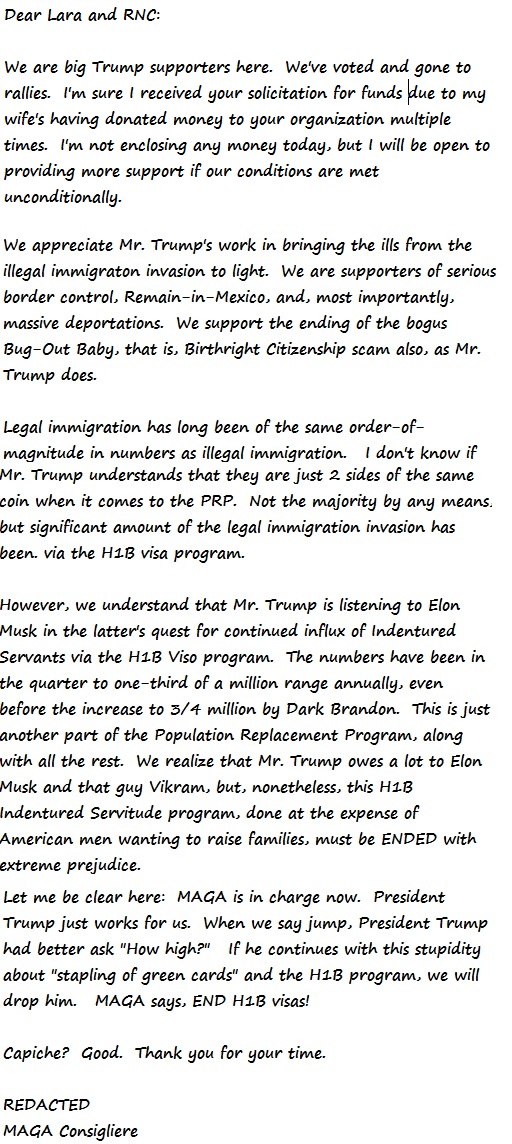 Well, now that this YUGE issue of the H1B visas has come to the forefront, something I'm very happy about of course, I had something else to reply with: