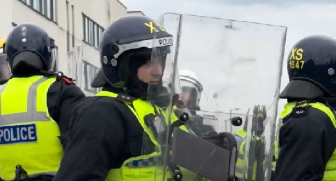 When it comes down to it, other than that these cops were in the way and acting traitorously toward their countrymen, I don't think the rioting Brits hated them here. The former were just extremely angry, having been at wits end for years, no, decades, in trying to stop the cultural and physical destruction of the UK. Enough is Enough! Chairs and rocks gotta fly. (Stuff has to burn too - that was later.)