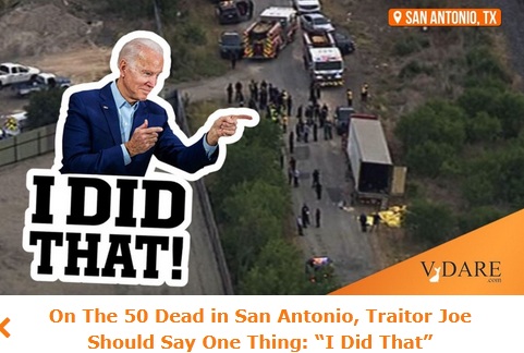 Screw 'em. I didn't load 50 people into the back of a semi-trailer in the heat of June down at the Texas border. I didn't support nearly-open borders that encourage this shit. I would say that this ought to be good deterrent, as bad as the deal was for the poor bastards (and even some ninos and ninas in the trailer). However, this alone won't stop anyone. It'll be considered just a low-odds hazards of the trek, I imagine.
