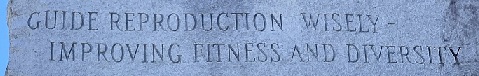 In case you can't read due to the Globalists' minions' having rubbed their grubby hands on these stones over the years. It reads: "GUIDE REPRODUCTION WISELY - IMPROVING FITNESS AND DIVERSITY". (When you spend the amount of money these 120 tons of granite cost, nobody gives you any shit about your grammar.)