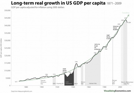 However, the GDP counts it all. In a manufacturing economy like modern China's, the GDP will reflect primarily the value of the cars and trucks produced, the machinery produced, the buildings built, and lots of other real products, In America, the money made by middlemen in large financial dealings, the "education" provided by universities to their gender studies majors, the money made by lawyers for their legal services in their suing to stop a road being built ... ker-ching! They are all part of the huge GDP we rack up.