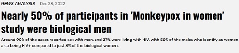 A study on MonkeyPox in women was published in The Lancet recently in which almost half of the cohort being studied were males who identify as women.What's the Venn Diagram of the "trans women", "cis women" and "non-binary individuals" look like again? This is a real problem for the application of the scientific method. It's hard to test for the unfair speculation of the spread of MonkeyPox being via men porking other "individuals" in the ass when the half of your sample that consists of people who can't pork anybody in the ass is tainted with people who may just be able to pork people in the ass after all.