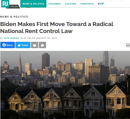 This is a point that should have been made in our initial post on the effort of Zhou Bai Dien and the Congressional Commies to implement national rent control. Those pushing this obviously unConstitutional - but who cares? - rent control will be the first to tell you the purported reason* for it is that, due to inflation, the rent is too high!
