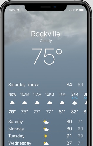 So Apple is using their internal forecast data. Who do they have working in that department? Is that where they put the AA/Woke hires to keep them from fucking up the software? I mean, a few weeks back we did a lot of watering in two different places, as the phone said it was not going to rain until the weekend at the earliest. This was on a Tuesday. It rained like hell Tuesday night, and it rained like hell on Wednesday night. We could have saved on the water bills, but more importantly, on our time.