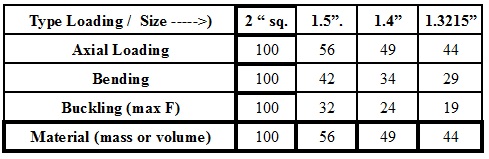 Secondly, note the last row. If one doesn't care about any of this structural stuff, that is just the decrease in material in mass and volume. Because that's just based on cross-sectional area (they surely won't change length off of the Nominal, will they?), the numbers are the same as for Axial Loading "strength", also based on cross-sectional area. The point is just "how much wood am I getting for my money?"