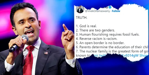 Vivek, a figure who thinks he is qualified to lead White-Christian America because in 2021 he published a book claiming he has discovered ten key-points on why to oppose Wokeness, and got promoted on Tucker Carlson for the effort (favorable attention which, let me point out, no comparable White-Christian Male would have gotten; even Steve Sailer has never been invited on Tucker Carlson, though maybe he will before spring 2024 given his new book; Tucker just did a long sympathetic interview with the anti-Obama homosexual cocaine user Larry Sinclair who claimed he had drug-and-sex liaisons with Barack Obama in 1999, so surely Steve Sailer qualifies as more respectable than that).