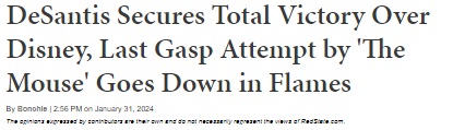 The thing is, money's not everything, and Ron DeSantis' stance against the extreme Woke politics of Disney and Disney World, where the kids can experience it, encompasses this thought. Those politicians that have been against his fight either have more greed than Conservativism (the local ones), are envious of DeSantis' success, or they (on the left) simply want the Cultural Rev. 2.0 to continue.