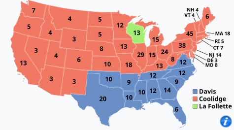 * This may seem to not matter so much, since he only won his home State of Wisconsin. However, that's not the case, when you think about the voting results within States. I'd guess that Mr. Follette took votes that would otherwise have gone to Mr. Davis. I don't know - I wasn't there.