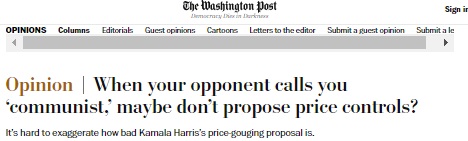 I got to that article from Instapundit. Did you notice what publication that is? I sure didn't! This morning, I read this thing from yesterday, with Catherine Rampell describing how perfectly stupid Kamelion's anti-Inflation, anti-Price Gouging proposal is, before I looked to see what site I was on. I got pretty far in fact, until I saw the abject stupidity of writer Catherine Rampell herself to boot. Only then did I scroll to the top. Ahhhh, that explains everything.