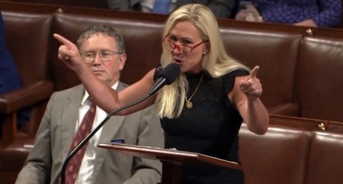 (This one's a file photo from when she was pushing to oust Speaker Mike Johnson.)