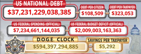 Yeah, the DOGE clock actually looks significant, but that assumes all cuts were in the Big Bulbous Bill. They weren't. Our financial problems are not about the FED building, with a waste - if you include the whole thing, which you should - of, oh, back-'o-the-envelope about 0.12% of just the DEFICIT, the overspending for this year annualized.