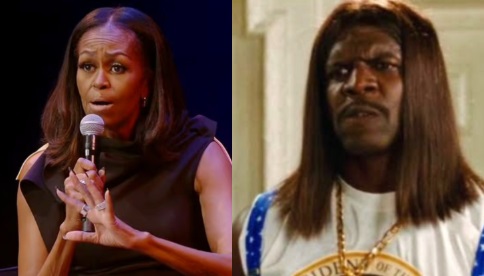 Mr. Sailer got back to this niche but illustrative subject of his after reading yet another New York Times article. He wrote Michelle Obama Declares World War Hair, subtitled Are white people really to blame for why Michelle gets her hair straightened? What I could read from that post were well under a thousand words, but they say a picture is worth a thousand words, so here: