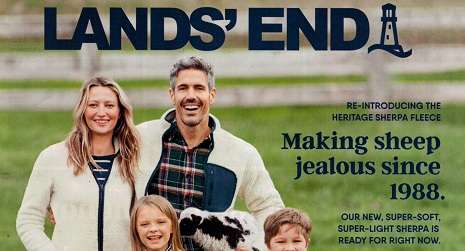 The picture above is from the latest Land's End catalog. I don't know; it just comes in the mail. Their marketing staff and powerhouse IT department have calculated that our household consists of yuppies... money not well spent. Perhaps the stuff inside is like J. Peterman, but I didn't open it - I just had to get this cover into the scanner.