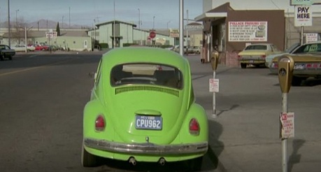 In the show, at one point these two bad guys grabbed the girl there in Vegas and drove off with her in their land yacht, a red new model Lincoln Town Car, so Jim went to the girl's car to chase them. But, well, he looked at that lime green VW Beetle, fumbled with the keys in his hand for a second, and just walked back inside. Haha! I guess that was intentionally funny, but it was very subtle.