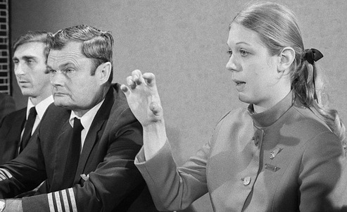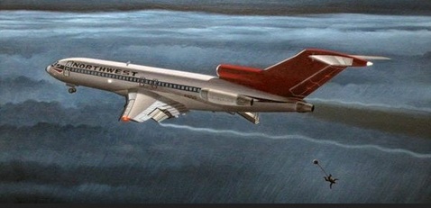 A well dressed 40-something-y/o-appearing gentlemen who called himself Dan Cooper** bought a Northwest Orient airline ticket for Flight #305 Boeing 727-100 service from Portland, Oregon to Seattle, Washington for $20.*** En route to Seattle, Mr. Cooper told the nearest stewardess (gonna use the term in use then), one Florence Schaffner and gave her a note mentioning that he had a bomb and was hijacking the aircraft.. He indeed showed her an apparatus in his briefcase that at least looked like a bomb.