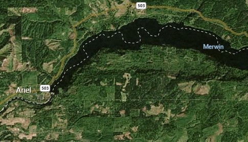The bing maps image above shows the land cover of recent years of course. There may have been more forest, but their may have been less. From a closer up aerial view of the area, I see that the small roads are curvy, meaning it is not flat there. There is plenty of new growth forest, meaning it could have been pasture at the time. I don't know - 10 miles to the north or northeast of the area speculated would give Mr. Cooper almost no chance in hell of survival. However, what I see in the area south and southeast of Ariel and Lake Merwin, Washington, shows land upon which he may have had a slight chance of getting lucky to land on a moonless night in a field somewhere.
