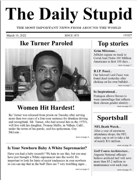 I'm taking it kind of easy this week, so far. In this case, commenter Adam Smith put together this excellent hilarious newspaper graphical spoof that just made my month. It's not just the hilarity but the thought that went into this. A majority of the regular commenters here are guys that I know got here from the Unz Review site and, more precisely, Steve Sailer's blog.
